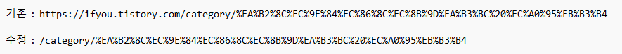 역시 똑똑한 우리 AI 선생님 😂 바로 CSS에 적응해보니 정상적으로 출력이 되네요. 링크주소는 적용하고자 하는 카테고리 위에 우클릭을 눌러 링크주소복사로 따오시고 CSS 수정하실때 티스토리 주소를 제외한 /category/ 부터 적용하시면 됩니다.