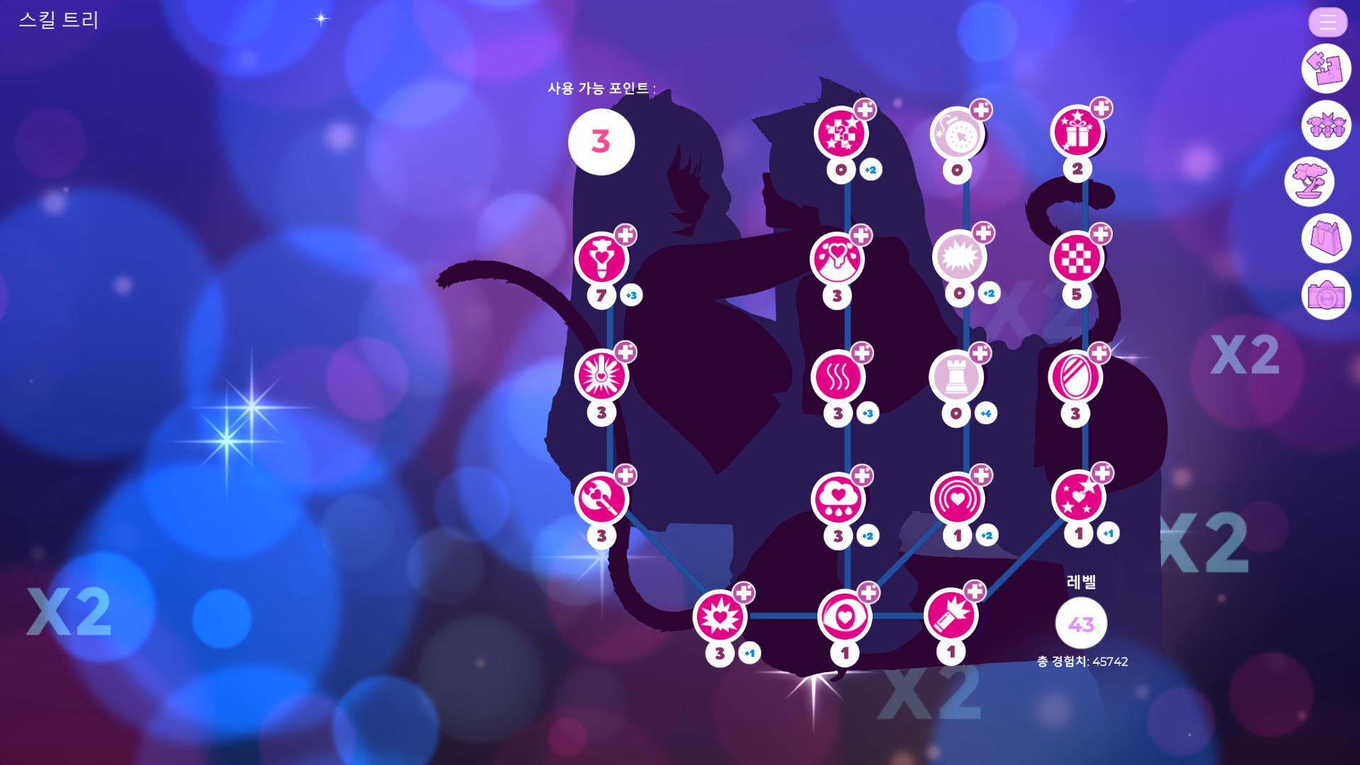 기본적인 게임 방식은 퍼즐을 맞추고, 고양이 여자친구와 대화를 하고 다음 스테이지로 넘어가는 방식이다. 경험치가 존재하기 때문에 레벨업을 통해 스킬을 찍을 수도 있는데 직접 사용하는 액티브 스킬과 자동으로 사용되는 패시브 스킬로 나누어져 있기 때문에 본인의 취향에 맞게 투자를 해주면 된다. 퍼즐을 맞출때마다 스킬을 사용할 수 있는 게이지가 충전되고 사용하는 방식인데, 개인적으로 페시브 스킬인 `초콜릿 폭탄` 스킬을 추천하고 싶다.