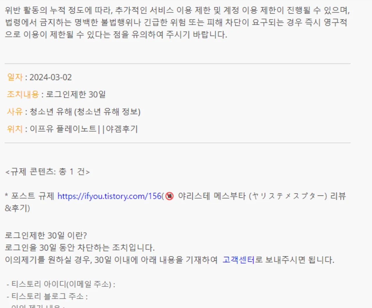 야리몬 리뷰를 남겼다가 30일 유배를 다녀왔습니다. 😢